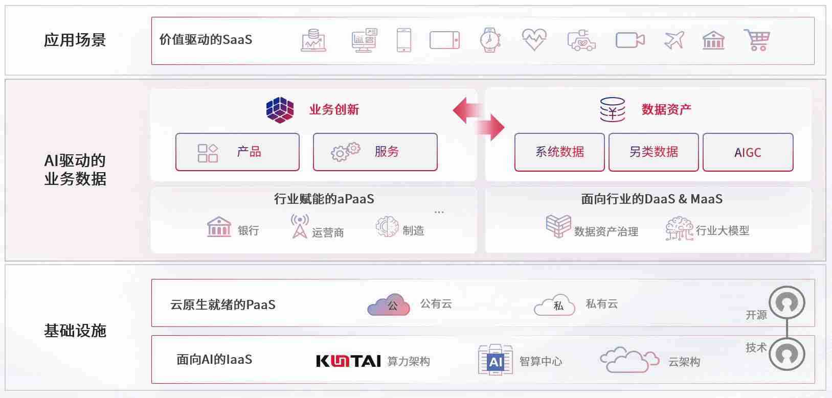 数字时代,,围绕企业数字化转型的关键要素,,菠菜导航数码开创性的提出数云融合战略和技术体系框架,,,着力在云原生、、、数字原生、、、AI原生和信创产业上架构产品和服务能力,,为处在不同数字化转型阶段的快消零售、、汽车、、金融、、、医疗、、、、政企、、、教育、、运营商等行业客户提供泛在的敏捷IT能力和融合的数据驱动能力,,,,构建跨界融合创新的数字业务场景和新业务模式,,,助力企业级客户建立面向未来的核心能力和竞争优势,,,全面推动社会的数字化、、、智能化转型升级。。